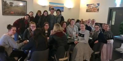 German musicians enjoying Italian food
